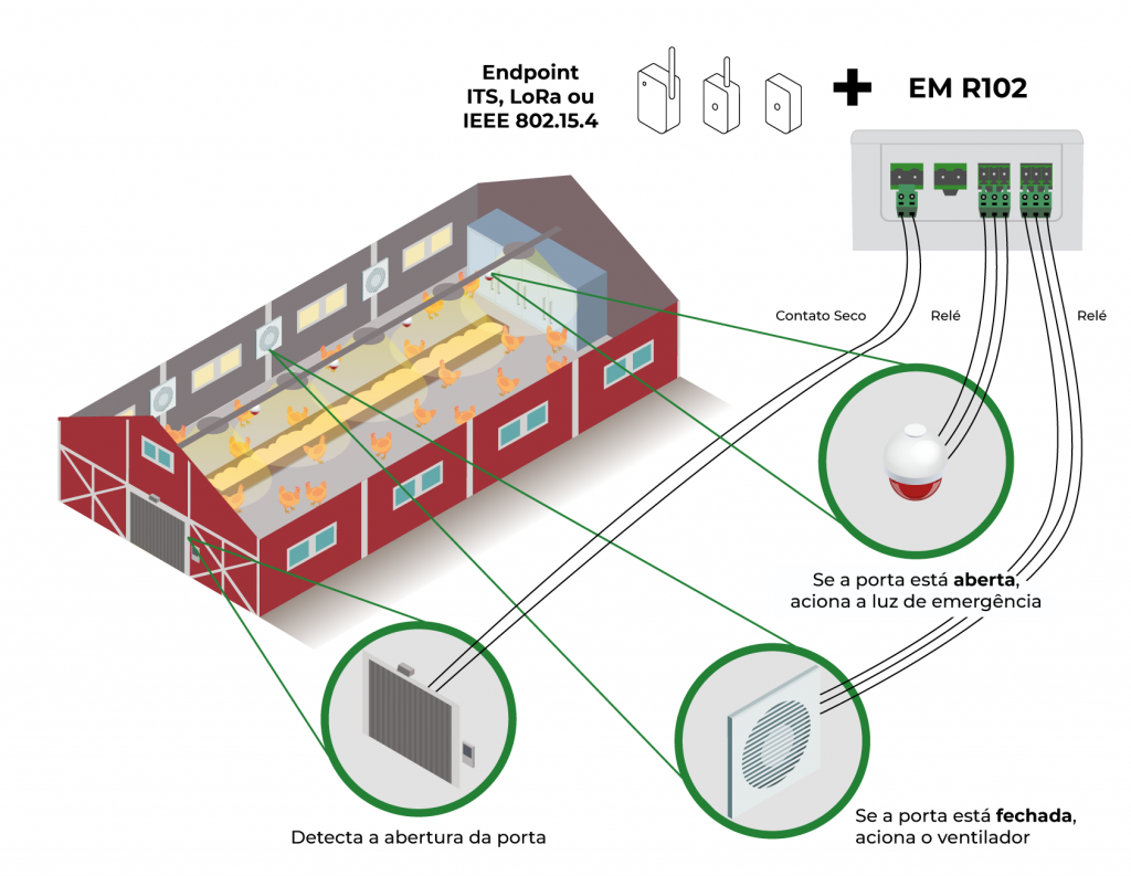 Com uma vasta possibilidade de aplicação, o EM R102 é totalmente indicado para parques industriais, cenários corporativo, projetos de smart cities e saúde 4.0. O funcionamento vai de desde comandos para aberturas de portas a acionamento de motores.