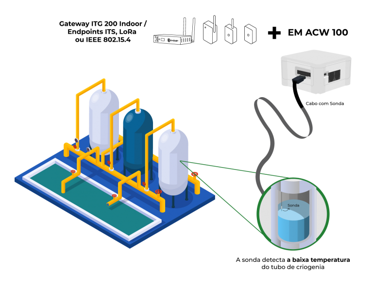 Com a combinação entre o NIT/NIR + EM ACW 100 , você coleta temperatura em ambientes altamente desafiadores, como tanques de nitrogênio, tubulações e processos industriais