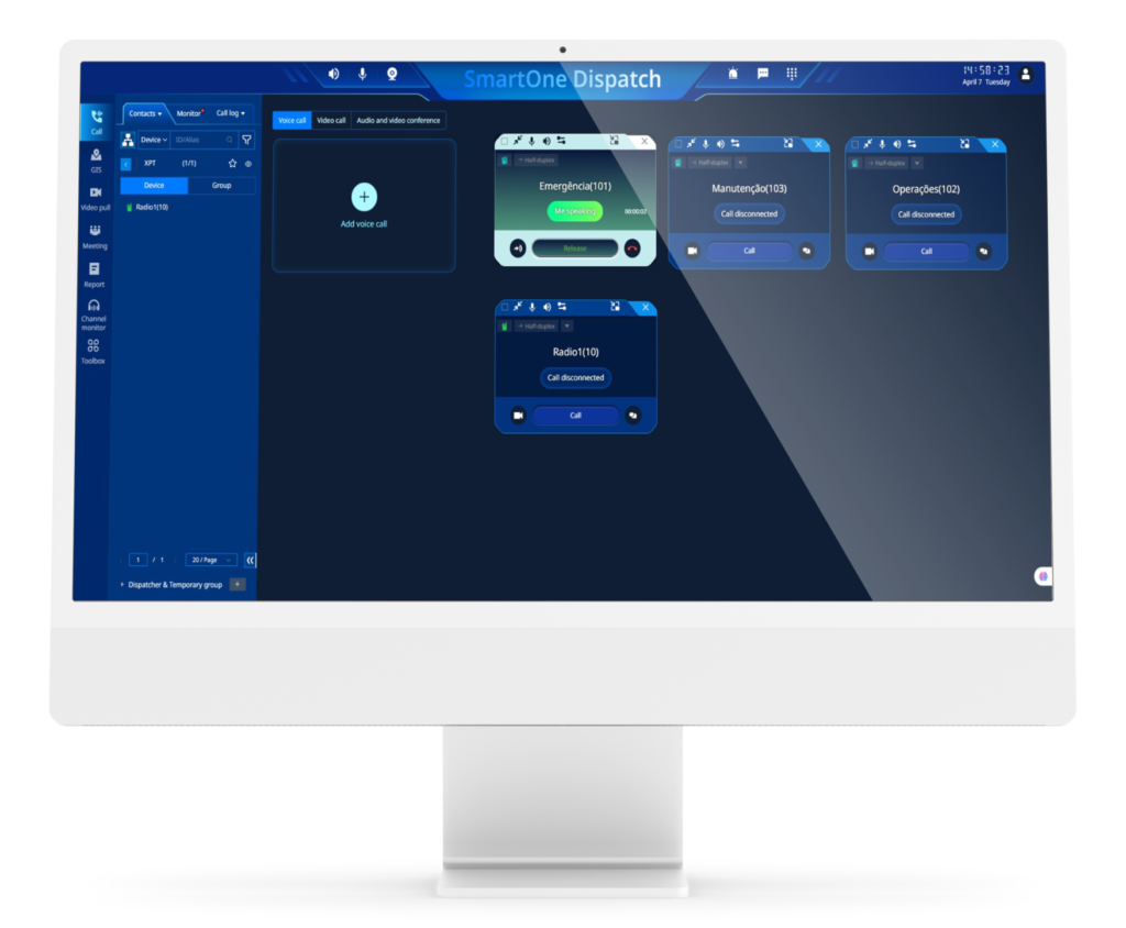 A Hytera SmartOne é uma plataforma de comunicação unificada que permite a intercomunicação entre vários sistemas e um despacho unificado. Esse é um sistema que possibilita a comunicação entre usuários de rádio, despachantes e usuários de redes públicas, conectando diferentes dispositivos e permitindo a cooperação entre departamentos em tempo real.